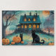 Black Cat, Jack O Lanterns, Spooky House Halloween Jigsaw Puzzle