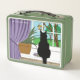 Black Cat Looking Out Window Metal Lunch Box