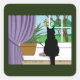 Black Cat Looking Out Window Square Sticker