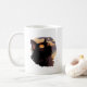 A moody illustration of a black cat gazing upward, with glowing eyes that reflect curiosity and mystery beneath the night sky.