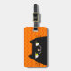 Simple, modern, cute cartoon, orange chevron pattern and black cat luggage tag.