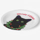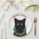 Black cat | Meowy Catmas Holly berries Christmas Paper Plate
