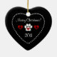 A beautiful black cat 'Merry Christmas' heart ornament. Ornament features a black cat illustration digital art in black and white, with red heart accents and white paw prints on the front. The back of this ornament has a paw print and two red hearts with dotted heart frame. The back reads Merry Christmas, which you can change in the template field area on the page if you would like to add your own greeting. Also enter the current year for the bottom of the ornament. Makes a wonderful gift for family or friends or as a new addition to your holiday ornament collection! This design is available in our store also as a personalised pet name ornament , and also on other shapes and styles of ornaments, greeting cards, stamps, cards and more! Please visit our store for additional animal styles and gift products.