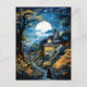 In the embrace of a tranquil night, a black cat sits on a winding cobblestone path, gazing upon a picturesque village. The scene is illuminated by a luminescent full moon that hangs low in the indigo night sky, casting a gentle glow over the landscape. A kaleidoscope of autumn leaves, in warm shades of amber and gold, and a myriad of flowers border the path. The cozy cottages nestled amongst the trees exude a sense of warmth, with golden light spilling from their windows, suggesting the quiet comfort of homes filled with life. The world is still, save for the soft whisper of the night breeze and the distant hush of the woodland, inviting a moment of reflection and peace. generativecontent