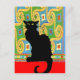 Black Cat on Abstract Wallpaper Postcard