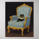 Black Cat on Blue Floral Armchair Poster