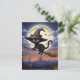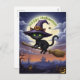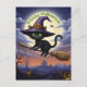 Black Cat on Flying Broom Holiday Postcard