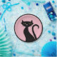 Retro black cat illustration on a pink background.