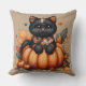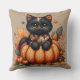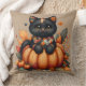 Black Cat on Pumpkin with Autumn Quilt Pattern Cushion