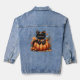 Black Cat on Pumpkin with Autumn Quilt Pattern Denim Jacket