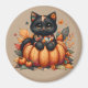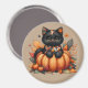 Black Cat on Pumpkin with Autumn Quilt Pattern Magnet