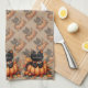 Black Cat on Pumpkin with Autumn Quilt Pattern Tea Towel
