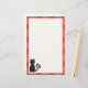 Black cat design on stationery with red plaid border.