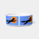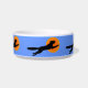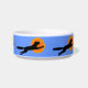 A cat dish with vintage art of a black cat jumping across an orange moon. Click Customise It to add a name, change background colours and more, even save your design for later.