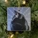 Beautiful black cat ornament to adorn your tree. Are those ice cicles in the background?