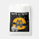 Black Cat Pumpkin Skulls Trick or Treat Halloween Favour Bag. Simple drawing of a black cat in a pumpkin with two spooky skulls and spider net. Great as kids`s Halloween treats bags.