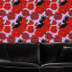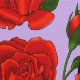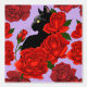A profile of a black cat with red roses in a backdrop of purple