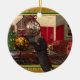 An adorable black cat round Christmas ornament! Ornament features a black cat playing with dangling decorations, a cosy Christmas home background, with glowing holiday lights. A wonderful decorative gift idea for both family and friends, and especially for someone that has a black cat or collects cat items. For more cat gift items, cards, and or other cat themed products please visit our store.
