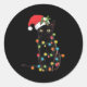 Black Cat Santa Tangled Up In Lights Classic Round Sticker