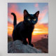 Black Cat Silhouette at Sunset Wall Art
