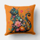 Black Cat silhouette made of colourful flowers Cushion