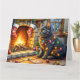 Black Cat Sitting Fireplace with Christmas Lights Card