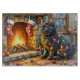 A cozy and enchanting Christmas artwork featuring a beautiful black cat sitting beside a warm fireplace adorned with stockings and twinkling Christmas lights. This festive scene captures the mysterious charm and elegance of the black cat, making it a perfect piece for cat lovers and holiday home decor. Add a touch of magic, warmth, and feline grace to your Christmas celebrations with this delightful artwork.