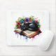 Black Cat Sleeping on Book with Flowers Mouse Pad