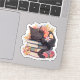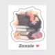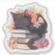 Black Cat Sleeping on Books Sticker, Spring Flowe