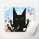 Black Cat Spring Fever: Kitty and Flowers Mouse Pad