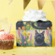 A cheerful cat sits peacefully on lush green grass, surrounded by colourful spring blooms under a soft blue sky. This digital oil painting captures a serene moment with expressive brushstrokes, warm colours, and a sense of gentle joy.