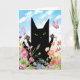 Black Cat Spring Greeting Card: Kitty and Flowers Card