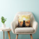 Black Cat Staring at Setting Sun Fall Halloween Cushion