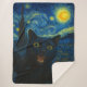 Black Cat Starry Night Van Gogh Cat Selfie Sherpa Blanket