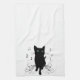 Black Cat Surrounded by Whispering Notes of Music Tea Towel