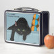 This is a standard metal lunchbox that appears to work just fine. We designed this box ourselves with an uploaded photo and custom text on the front and back. It looks absolutely beautiful except the front of the lunchbox is not centered like it shows in the photo. The print borders don't align with the inset flat part of the box where the preview photo online showed it perfectly centered in there. The back looks nice and centered though.