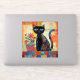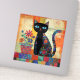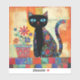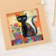 Black cat folk art, whimsical floral pattern, vibrant and decorative.
