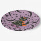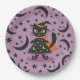 Black Cat Witch Purple Moon Stars Halloween Party Paper Plate
