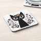 Black Cat with Big Eyes Surrounded by Flowers Coaster
