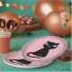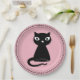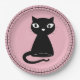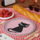Black Cat with Curled Tail customisable plates. Cute black cat sits with its tail curled and looks at you with its huge eyes. Currently there's a pink background, but you can remove it and leave it white or add the colour or design of your choice. You can change the image, add your own text and make it exactly what you want. It's easy with Zazzle's customisation tools. Look for coordinating, customisable kitchen and dining and home decor products in our store.