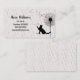 Black cat silhouette with dandelion and seedlings on pastel faded polka dot background.