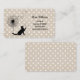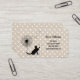 Black cat silhouette with dandelion and seedlings on white polka dot pattern.