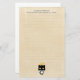 Personalised writing paper with paper lines for easy writing. A cute black and white angel kitty cat with a golden halo above her head, drawn in cartoon style. The background is a creamy parchment colour.
