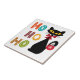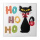 Colourful abstract Mid Century style illustration with black cat and Ho Ho Ho text design decoration on white background