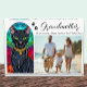 Beautiful vintage Black Cat Photo Block featuring family photo, text "Grandmother" with custom wishes and colourful mosaic stained glass background with black cat wearing golden collar + jingle bell. Elegant modern photo block for cat loving person, unique artistic decorative piece.
