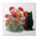 Black Cat with Poppies Tile