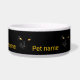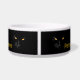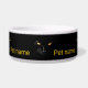 Stunning black cat with yellow eyes makes a magical impression of gold on black velvet. An elegant pet bowl. Customisable. You can change or delete the template text. Have fun and feed your pet!