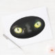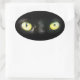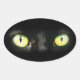 Black Cat, Yellow Green Eyes, Sleek and Spooky Oval Sticker