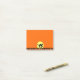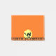 Image is from my original drawing. This spooky black cat with green eyes is walking across the top of a black fence. There is a huge yellow moon against an orange sky in the background. See my store Art by MAR for matching products with this design.