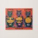 FUN FOR THE FAMILY. BLACK CATS AND SEE NO EVIL PUMPKINS, FOLK ART HALLOWEEN PUZZLE Interlocking * Look For Matching Items Susan Brack Design